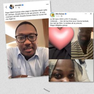 Sur Facebook, No Face s’est lâché en publiant un message visant le frère de la chanteuse. « Papa Djibril Guissé est-ce que tu vas bien ? Je te donne rendez-vous demain. Je te ferai mentir avec des preuves. Je suis vraiment désolé MIA Aissata Guissé mais il faut que je règle ce cas », a écrit No Face. Le chanteur a lancé cette publication à la suite de révélations faites par le frère de Mia Guissé lors d’un live sur les réseaux sociaux.